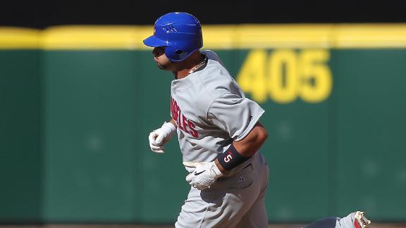Por los Cachorros Alfonso Soriano disparó un jonrón solitario, su quinto de la campaña , anotó y produjo una, mientras que Starlin Castro empalmó un triple.